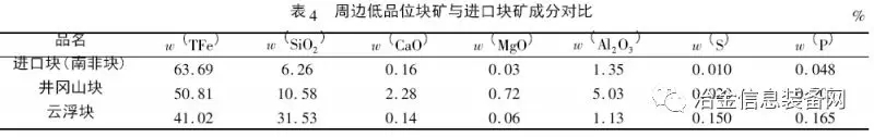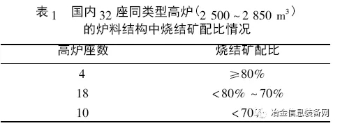 1) 礦石品位低,渣量大,入爐綜合品位為55%左右;